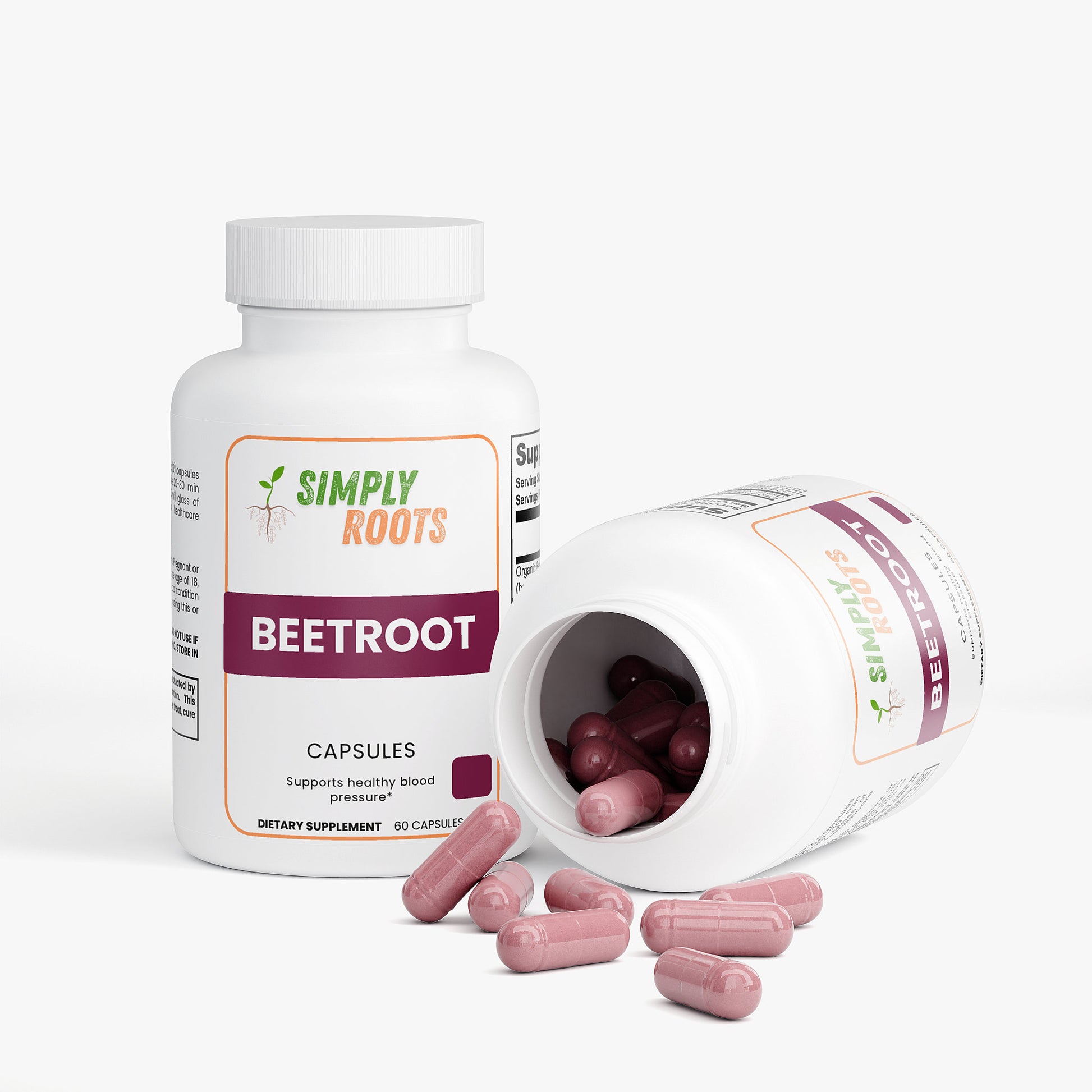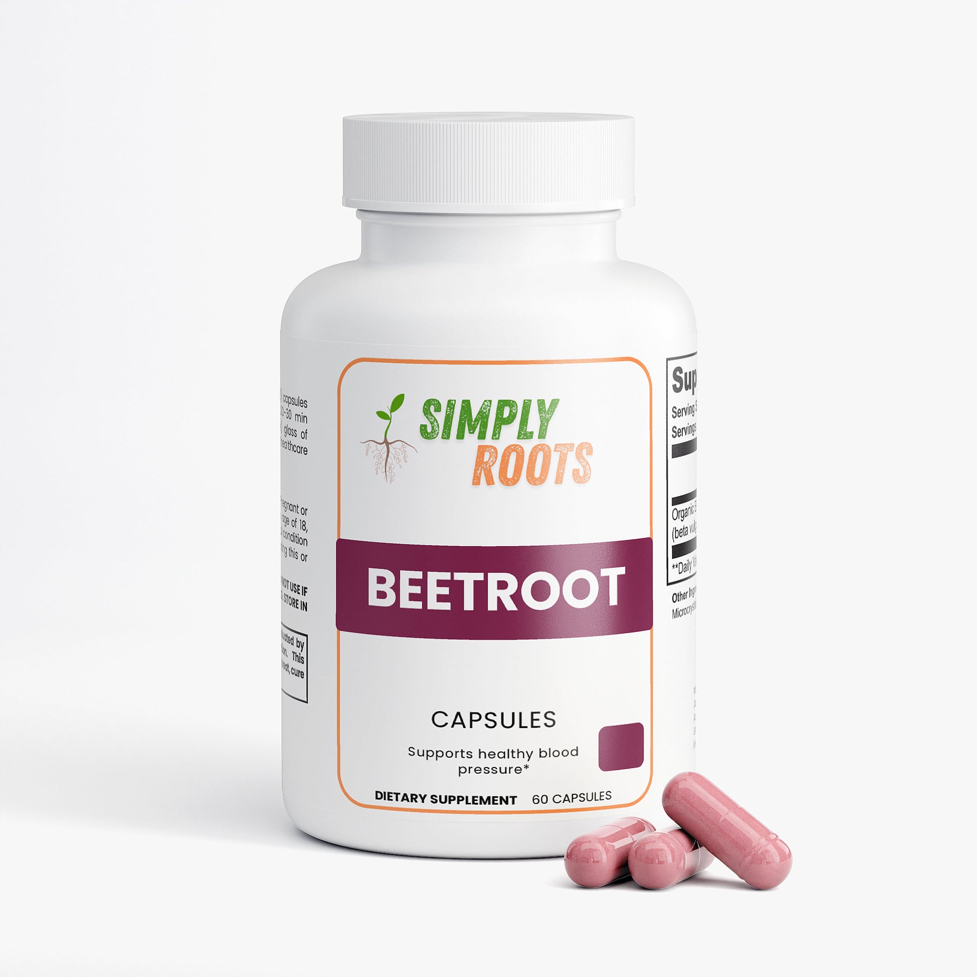 Ingredients: Organic Beetroot Powder (beta vulgaris) 1300mg, Hypromellose (vegetable capsule), Microcrystalline Cellulose, Magnesium Stearate.